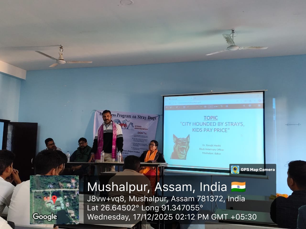An awareness session on the rising stray dog menace in the city, where children are increasingly paying the price, was conducted at Baksa Polytechnic by Dr. Banajit Kumar Medhi, Block Veterinary Officer, Baksa, and Dr. Jonmoni Barua, Veterinary Officer, Baksa.