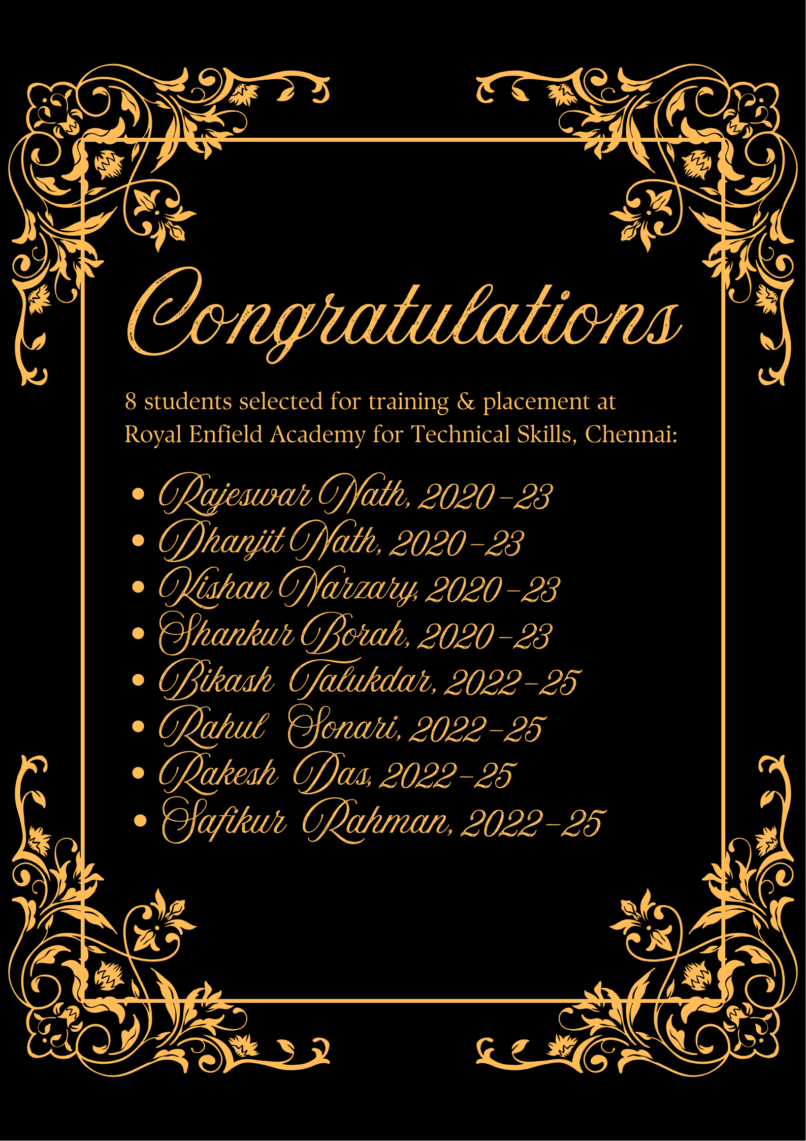 8 students from Mechanical Engineering Department placed in Royal Enfield, Chennai.